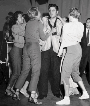 "Please, Elvis, please," they scream and shout, and sometimes "Bum Rush" him!